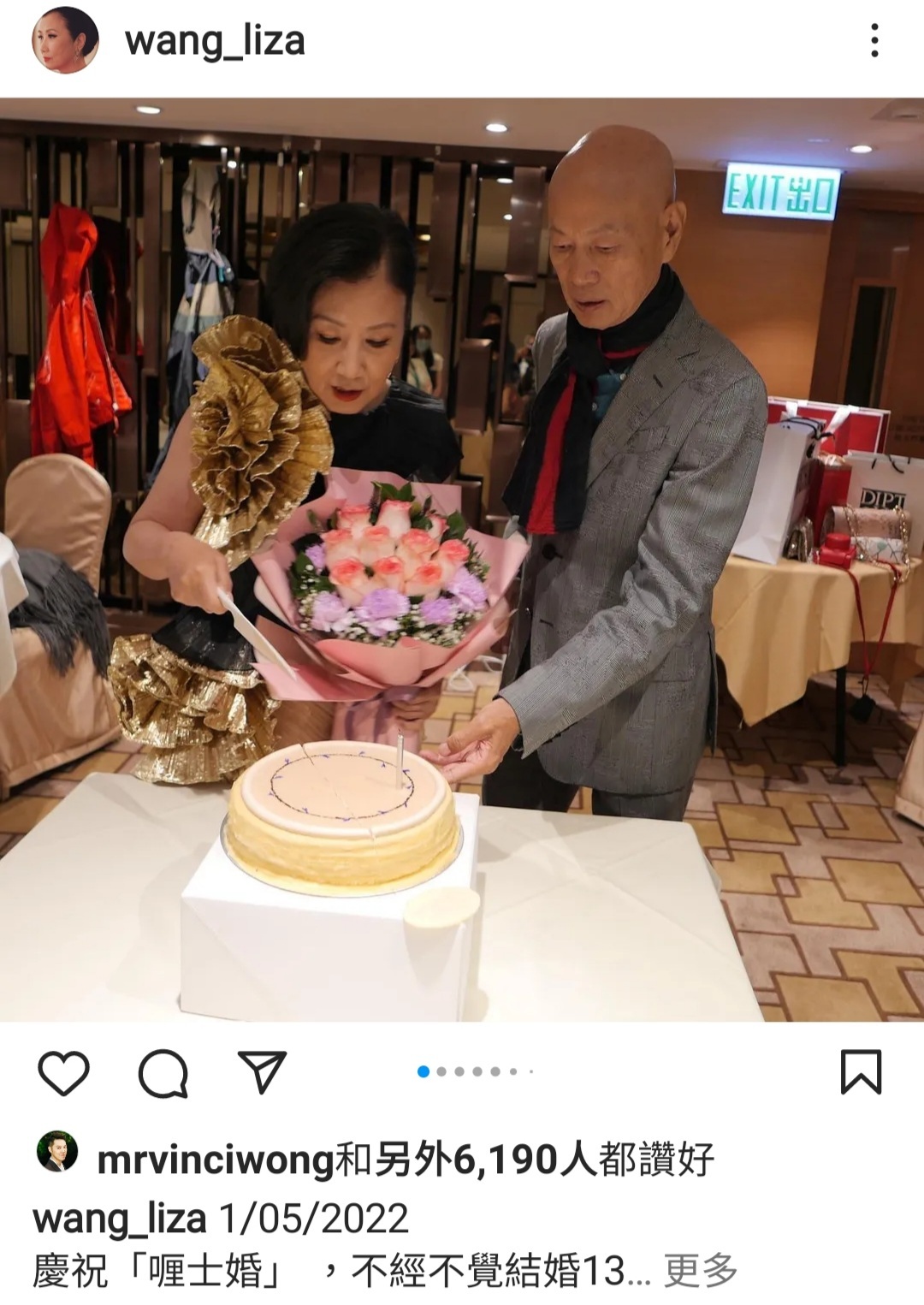 汪明荃(阿姐)和羅家英於2009年結婚,不經不覺已結婚13年。隨着政府放寬防疫措施,昨晚(5月1日),他們相約朋友慶祝「喱士婚」(Lace Wedding)。