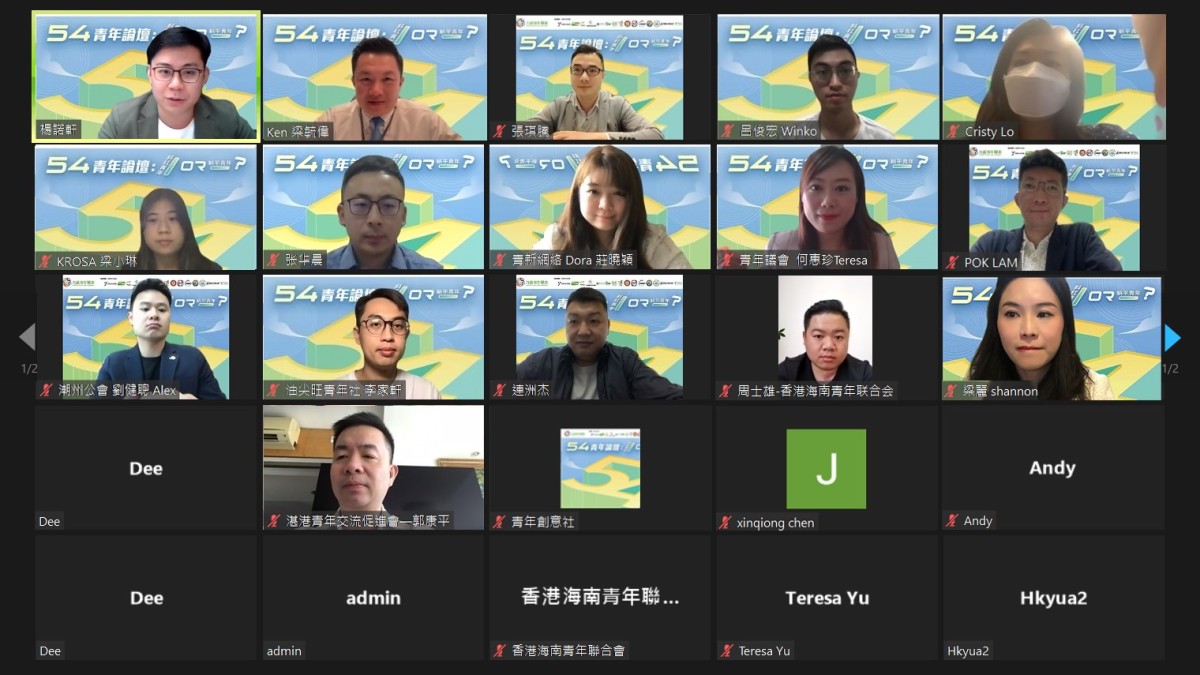 論壇首先邀請立法會議員梁毓偉、香港青年協進會主席張琪騰及「斜杠青年」代表呂俊宏發言。其後,優專才協會青年工作委員會會長張華晨﹑青年議會副主席何惠珍﹑香港海南青年聯合會副會長林博及油尖旺青年社主席李家軒等4名團體代表展開了熱烈討論。大家紛紛表示,青年是國家的未來、民族的希望,奮鬥是青春的底色、人生的光彩,香港青年也是中華優秀兒女的一份子,在實現中華民族偉大復興的歷史進程中不應缺席,也不能缺席。