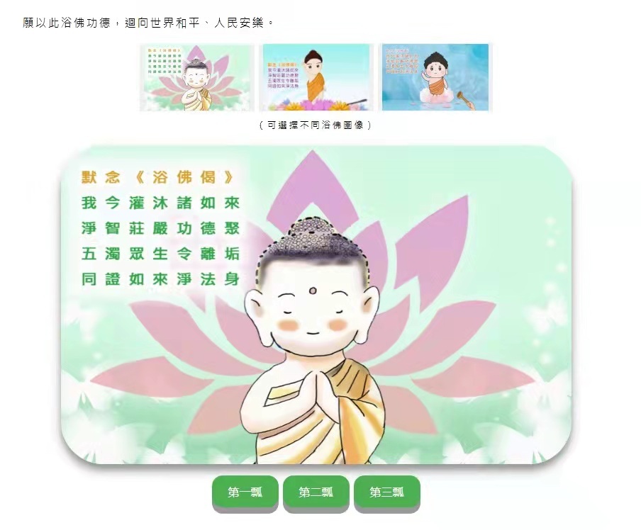 活動詳情、線上直播及網上浴佛,請瀏覽佛聯會佛誕專頁(點擊此處)或社交平台(Facebook及YouTube)。
