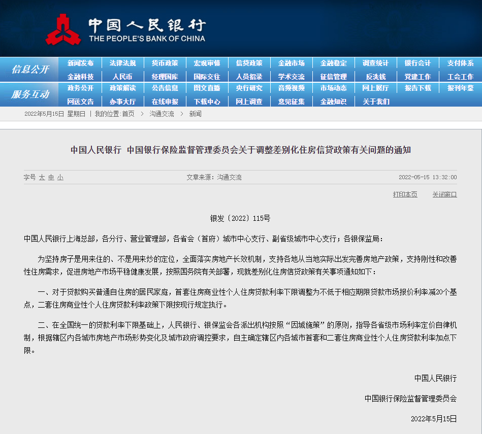 通知要求,在全國統一的貸款利率下限基礎上,人民銀行、銀保監會各派出機構按照「因城施策」的原則,指導各省級市場利率定價自律機制,根據轄區內各城市房地產市場形勢變化及城市政府調控要求,自主確定轄區內各城市首套和二套住房商業性個人住房貸款利率加點下限。
