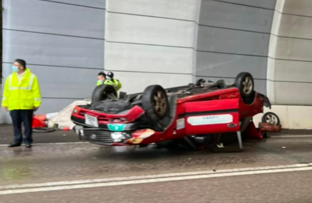 涉事的士受損嚴重,車尾冒煙,四輪朝天橫亘路中,長青公路往九龍方向、近長青隧道入口的慢線封閉。警方正調查意外原因。