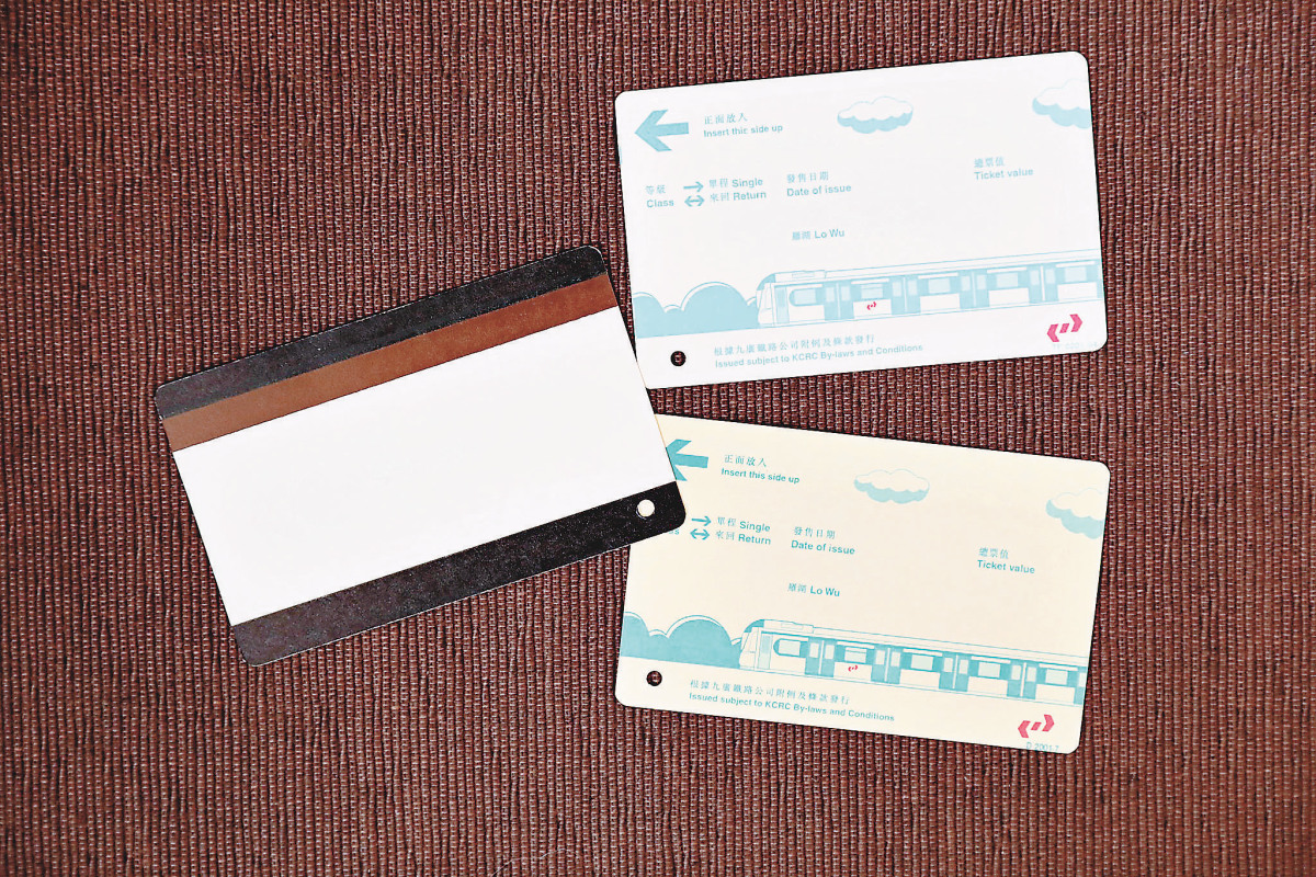 至於九鐵早在1960年代採用只有約5.7厘米的紙製車票,由於當時還未有入閘機,只能透過職員人手「剪飛」驗票。直至1982年投入電氣化服務,可通過入閘機的紙質磁帶車票應運而生,但由於車票上印有車程資料不能重用,成本較大,加上新界東沿線逐漸城市化,為應付逐年遞升的載客量,終在1993年改用可重用的磁性膠質車票。九鐵車票其中一個設計特色,就是會將當時營運的列車車種印在票上,甚具收藏價值。
