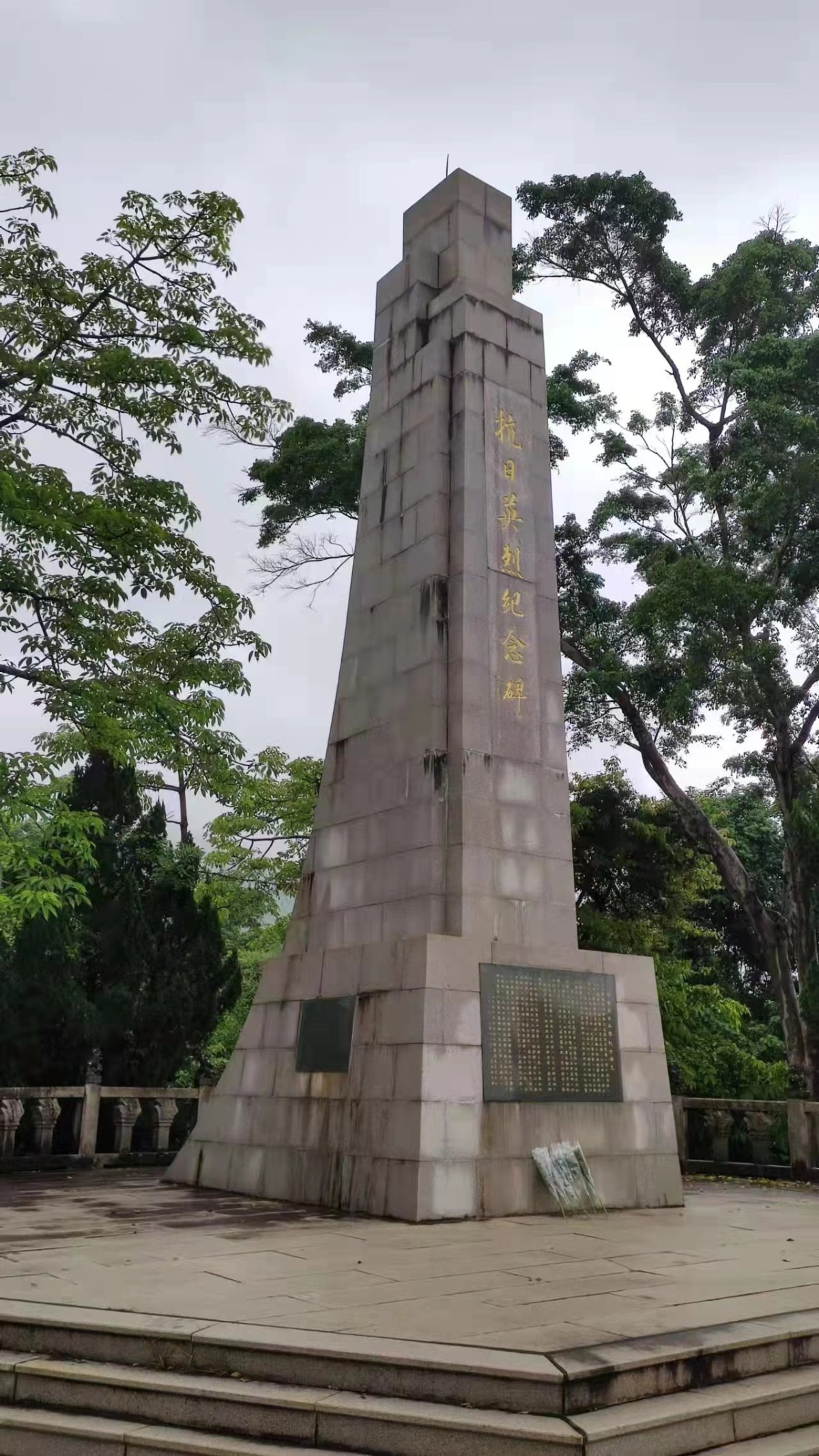 早在1982年,香港一群參加過抗日戰爭的東江縱隊老戰士就提議,建立一個紀念在抗日戰爭中英勇戰鬥及獻身的人士的英烈碑。1984年,原東江縱隊司令員曾生來到香港,在老戰士陪同下重走了當年戰鬥過的地方,最後選擇了在西貢北潭村斬竹灣臨海處,建立一個香港抗日英烈紀念碑。老戰士和當地的愛國人士籌了30多萬元,並向政府租了一塊地,開始籌建。老戰士和老戰士的後代,地方愛國人士,千方百計籌了一百多萬,包括英國等地華僑的捐款,也請來佛山粵劇團來香港義演籌款。1988年動工,1989年1月23日揭幕。青石碑高二十公尺,碑體似竪立的步槍,反映了當年游擊隊戰士的戰鬥生活。紀念碑雄偉壯觀,表現了香港人民在國家危難的時候奮起戰鬥,同舟共濟,保家衛國的香港精神。隨後這個紀念碑還增添了「赤子報國」的銅像,石鑄的抗日史冊,成了香港紀念在中國共產黨領導下的抗日總體群像的碑園。2020年9月1日,被國務院列入第三批國家級抗戰紀念設施、遺址名錄。