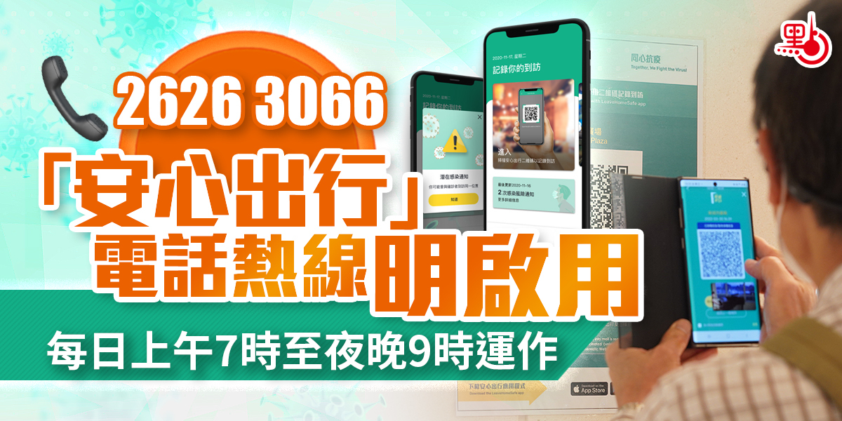 政府資訊科技總監辦公室今日(22日)宣布,「安心出行」電話熱線(2626 3066)明日(23日)起投入服務,處理市民有關安裝或使用「安心出行」流動應用程式的查詢,例如程式的功能及更新、儲存及展示「疫苗通行證」等。熱線每日上午7時至晚上9時運作。