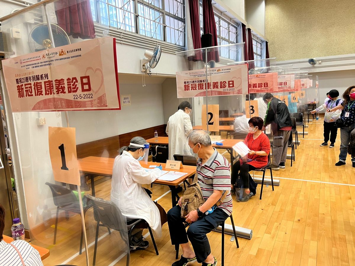 本港爆發第五波疫情期間,大量市民確診,更有新冠康復者表示出現體弱、氣促等長新冠後遺症。東九龍居民委員會今日(22日)聯同黃大仙民政事務處、香港社區醫療教育服務協會、全港抗疫義工同盟、九龍社團聯會黃大仙地區委員會,舉辦名「慶祝回歸25周年系列-新冠復康義診日」的中醫義診活動,為黃大仙區曾確診的街坊,提供免費中醫診療服務,活動在鳳德邨鳳德社區會堂舉行,吸引超過300名黃大仙區內新冠患者前來求診。