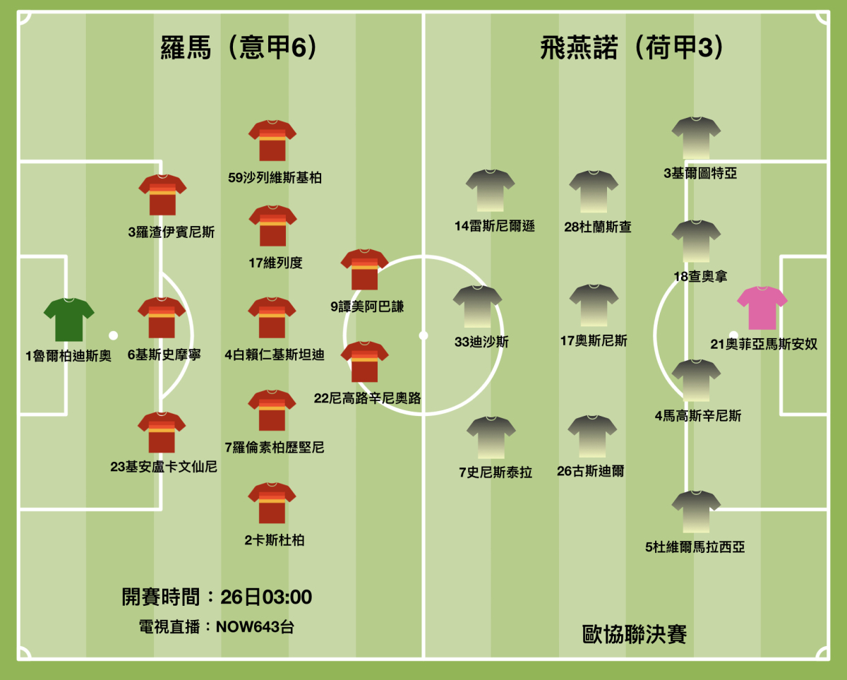 首屆協聯決賽在周四凌晨於阿爾巴尼亞天空體育場上演。意甲「首都狼」羅馬與荷甲「三哥」飛燕諾爭奪冠軍。羅馬在4強力克李斯特城晉級,飛燕諾憑藉首回合主場贏3:2的優勢,次回合守和馬賽晉級決賽。兩隊晉級之路皆不平坦,但論決賽經驗,羅馬主帥摩連奴肯定勝人一籌,在人腳齊全之下,羅馬捧盃的機會稍高。(香港時間周四凌晨3時開賽,NOW643台直播)