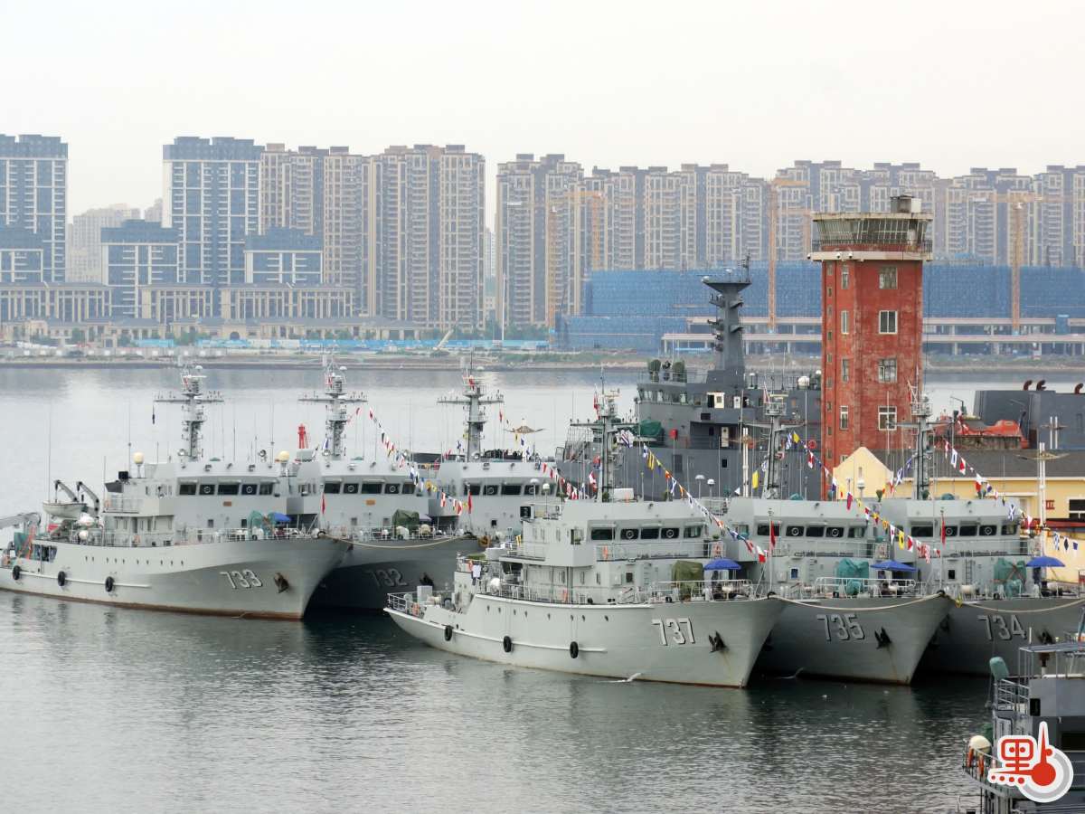2021年12月:南海某海域,南部戰區海軍某掃雷艦大隊瀘溪艦、常熟艦組成的艦艇編隊開展艦艇操縱集訓,在對浮雷進行實彈射擊中,高炮官兵首發即中。