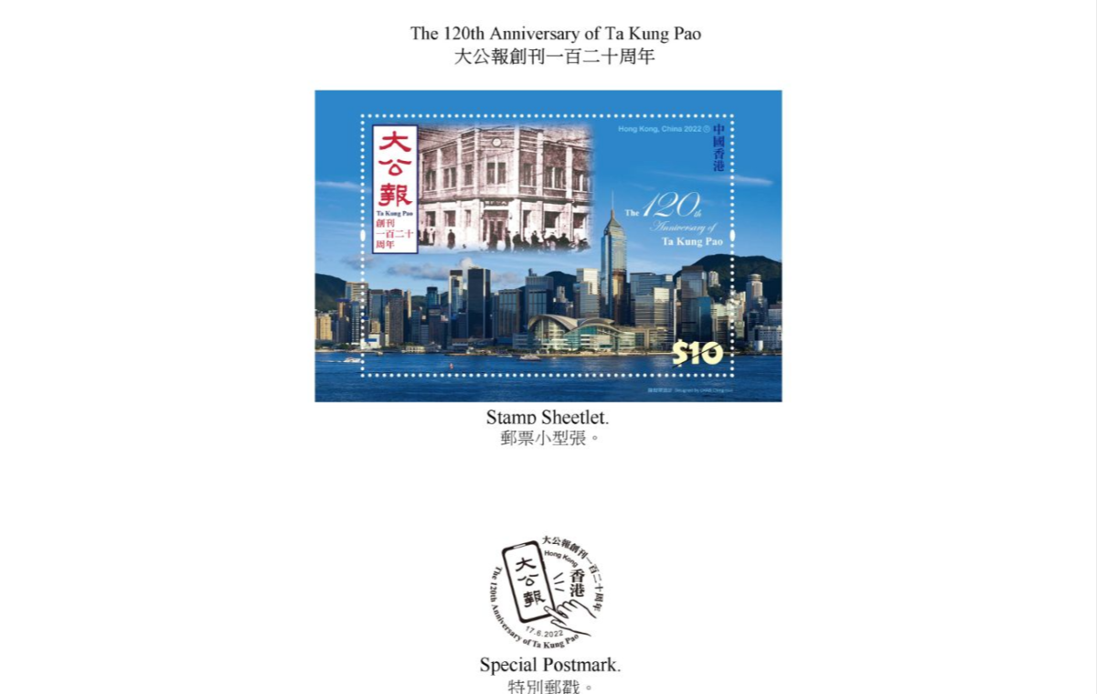 《大公報》創刊於1902年,至今已有120年歷史,是仍在刊印中、歷史最悠久的香港中文報紙。香港郵政今日(26日)宣布,以「大公報創刊一百二十周年」為題的郵票小型張及相關郵品6月17日(星期五)推出發售。
