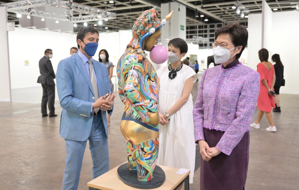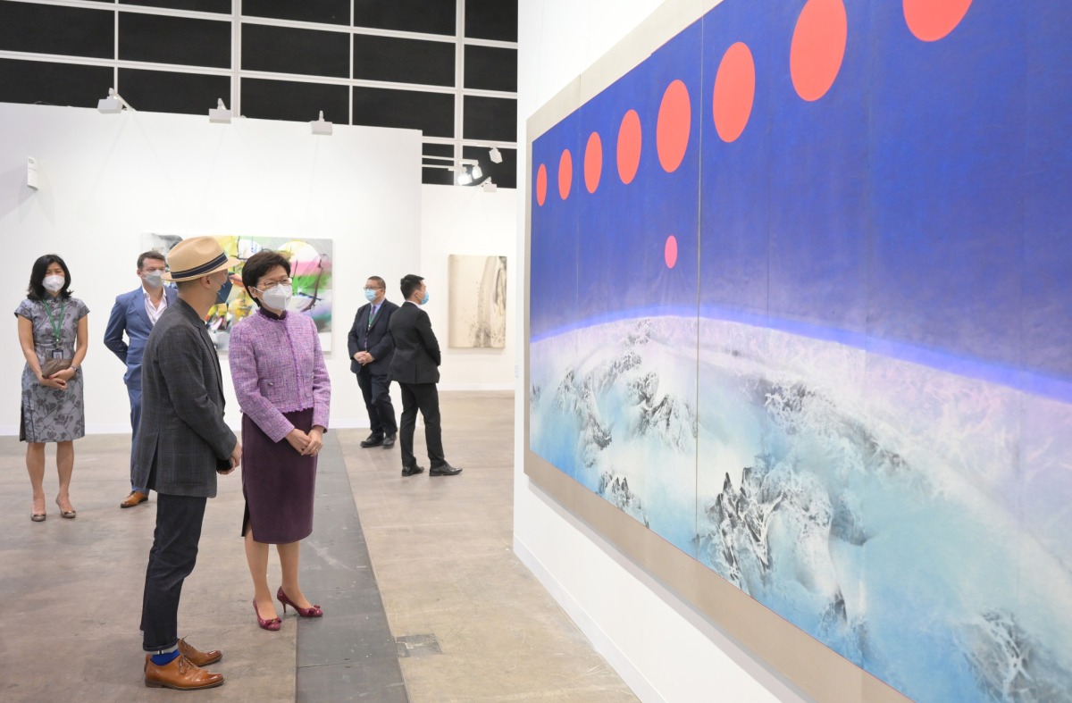 2022年巴塞爾藝術展(Art Basel)香港展會本周三(25日)起在香港會展中心一連三日舉行貴賓預展,並將在周六及周日(28日至29日)向公眾開放。行政長官林鄭月娥今日(26日)應邀到會展中心參觀巴塞爾藝術展。