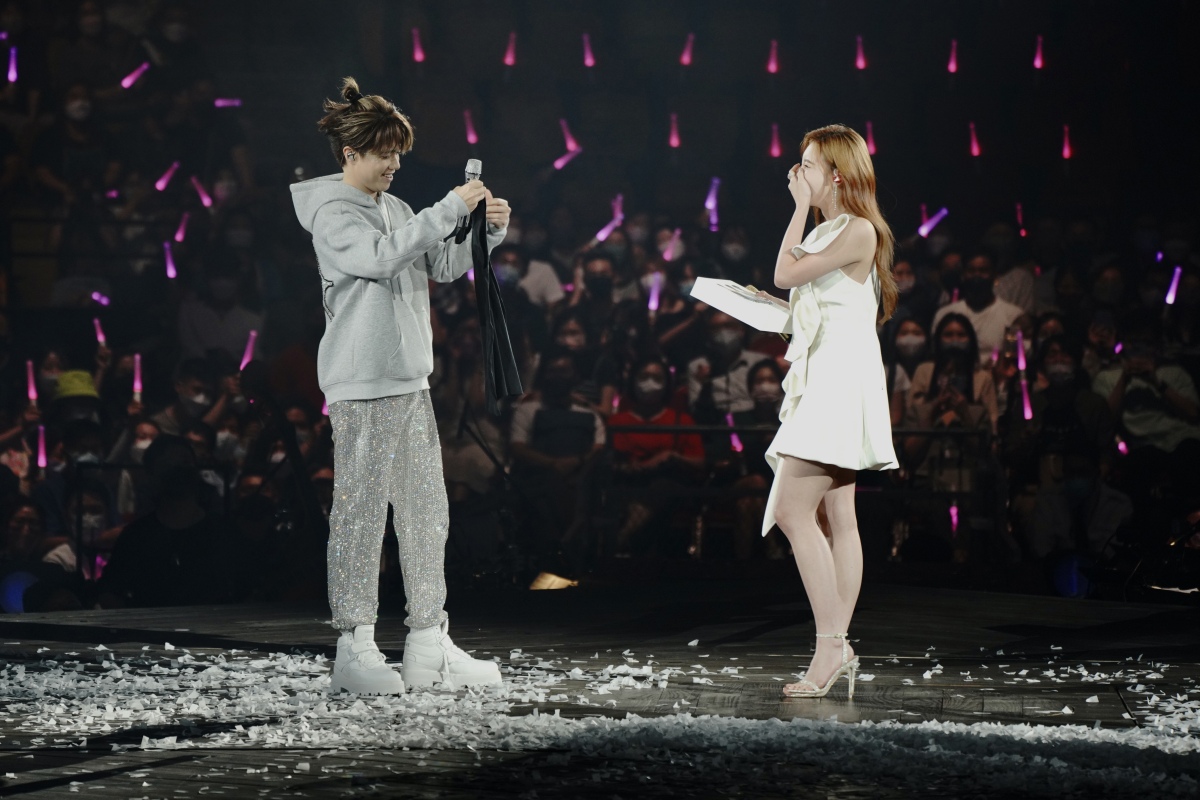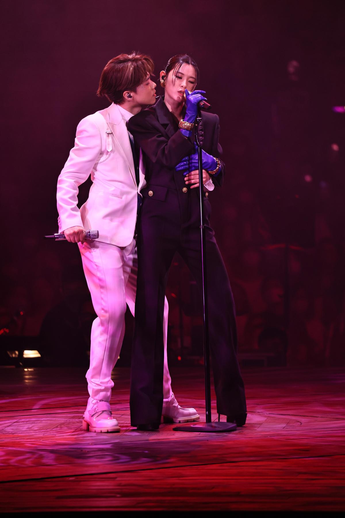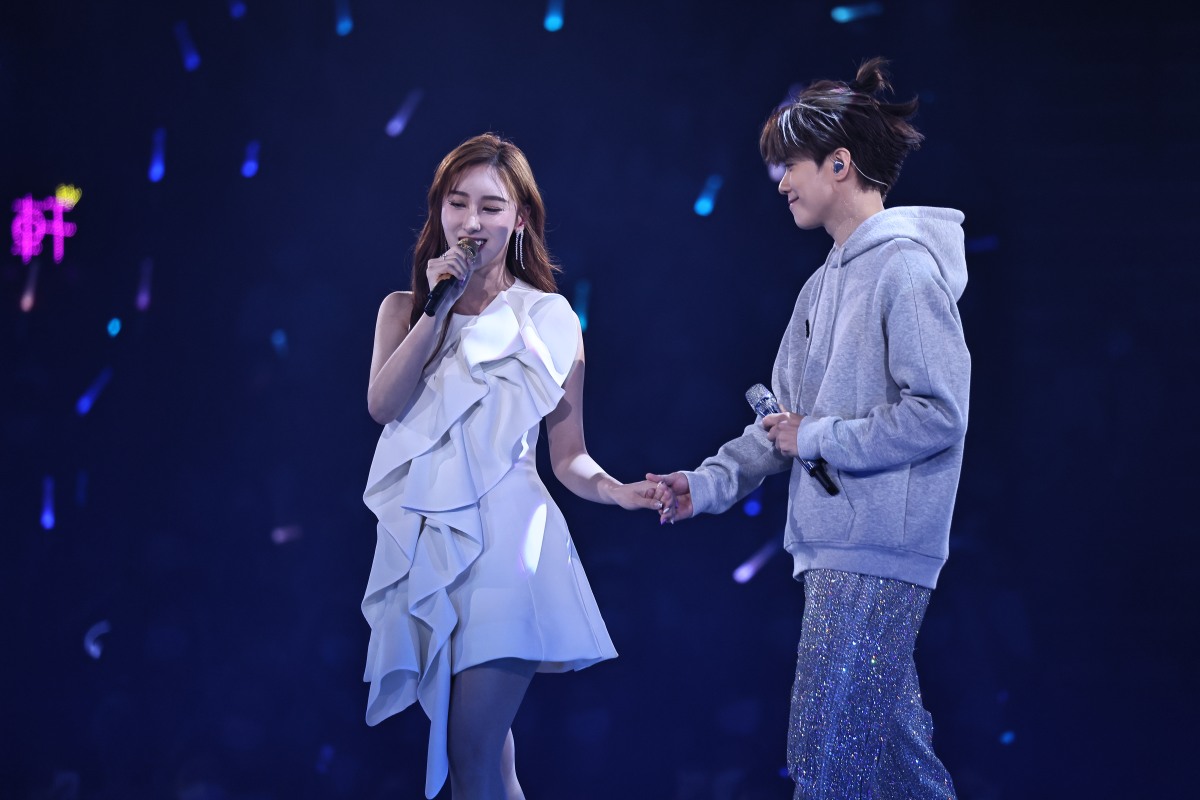 張敬軒THE NEXT 20 演唱會昨日(27日)踏入第13晚,這晚他請來同鄉陳蕾一起載歌載舞,兩人合唱《詩郵寄》,已經令全場哄動,意想不到陳蕾還送上手織的咪套,親手幫軒仔「笠」上去,引得觀眾狂笑,連軒仔都忍唔住話,「呢份禮物真係好爆。」
