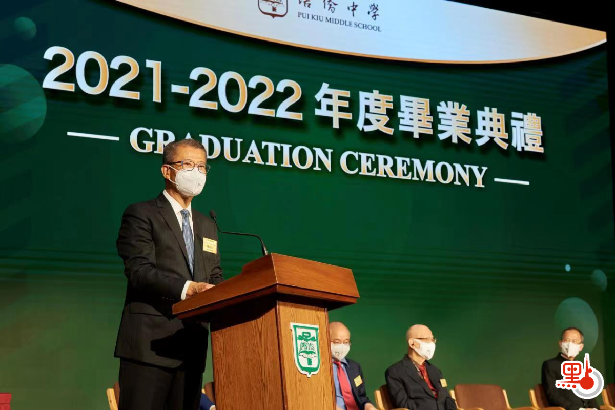 培僑中學今日(29日)舉行2021/22學年畢業典禮,財政司司長陳茂波在致辭時恭賀各位同學完成了中學階段,並指畢業標誌着各位完成了一個歷程,卻也是新一個旅程的起步點。他勉勵畢業生面對挑戰、面對考驗時,最緊要是抱持熱誠、努力去尋找自己的興趣和未來,在追尋未來和實踐理想的過程中,堅毅就會贏,相信大家都會找到自己的出路。