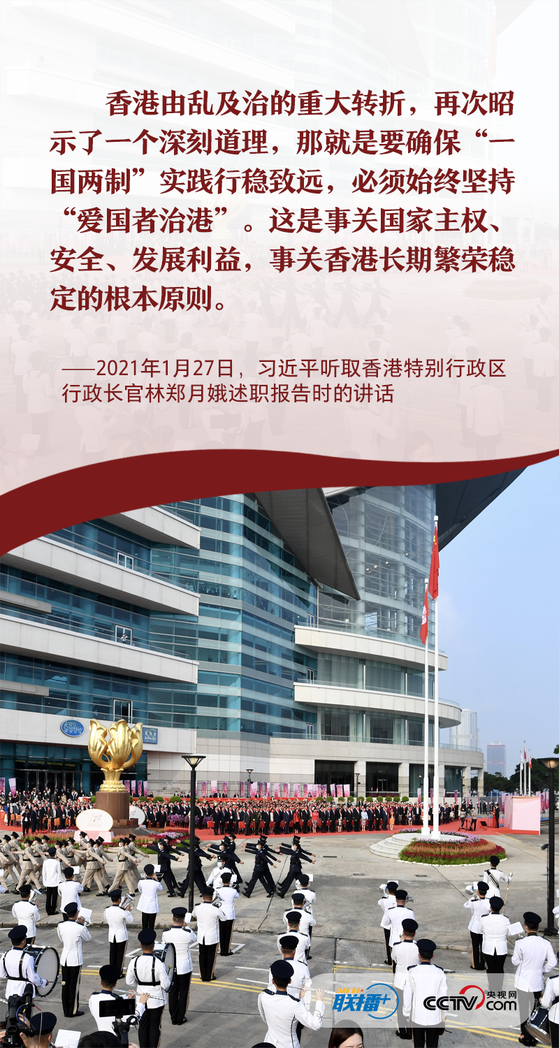 央視網擷取習近平主席有關「愛國者治港」的重要論述,內容如下: