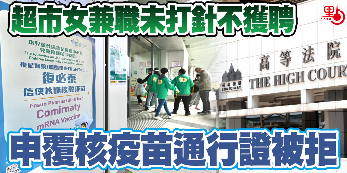 政府擴大「疫苗通行證」使用範圍後,一名百貨超巿兼職女售貨員報稱,因未有接種疫苗,遭超巿拒絕續聘,認為政府的規定侵犯她工作等權利,提出司法覆核。高院法官陳嘉信昨頒下判詞,指其未能提出合理可爭辯的地方,拒絕其司法覆核許可申請。