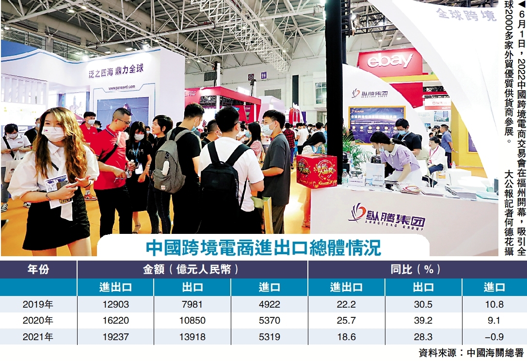 2022中國跨境電商交易會日前在福州開幕。此次交易會主題為「鏈接跨境全流域 共建電商新生態」,旨在積極鏈接中國製造與全球消費。受訪者表示,今年前四個月,作為外貿新業態新模式的跨境電商表現不俗,成為疫情之下穩住外貿基本盤的重要力量。隨着中國產業鏈供應鏈形勢穩中向好,加上TikTok等平台進軍海外帶貨市場,預估第三季度中國跨境電商將迎來新一輪爆發增長期。現在,業界都在積極備貨、出貨,挖掘跨境電商新機遇。
