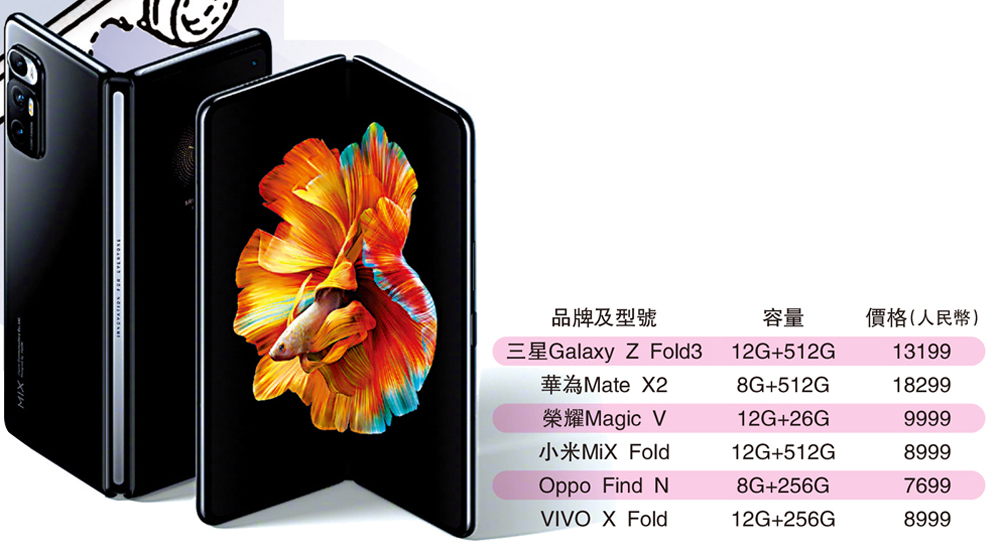 自從2018年柔宇科技發布了全球首款摺疊屏手機之後,三星、華為、摩托羅拉、小米、榮耀、Oppo等廠商陸續推出摺疊屏手機。目前摺疊屏手機因為成本更高,因此售價也比一般的手機要高出不少,列表中是目前市面常見的幾款摺疊屏手機的人民幣市場價(價格隨市場波動,僅供參考)。可以看到,其中起始售價最低的是Oppo Find N,其餘的幾款售價都接近或超過1萬元人民幣。如果不考慮它是一款摺疊屏手機,單看這些摺疊屏手機的配置,大多只是一般旗艦手機的水平,有的配置甚至不如主流旗艦手機,而我們需要花將近兩倍的價格去購買,這個價格門檻足以將大多數人拒之門外了。