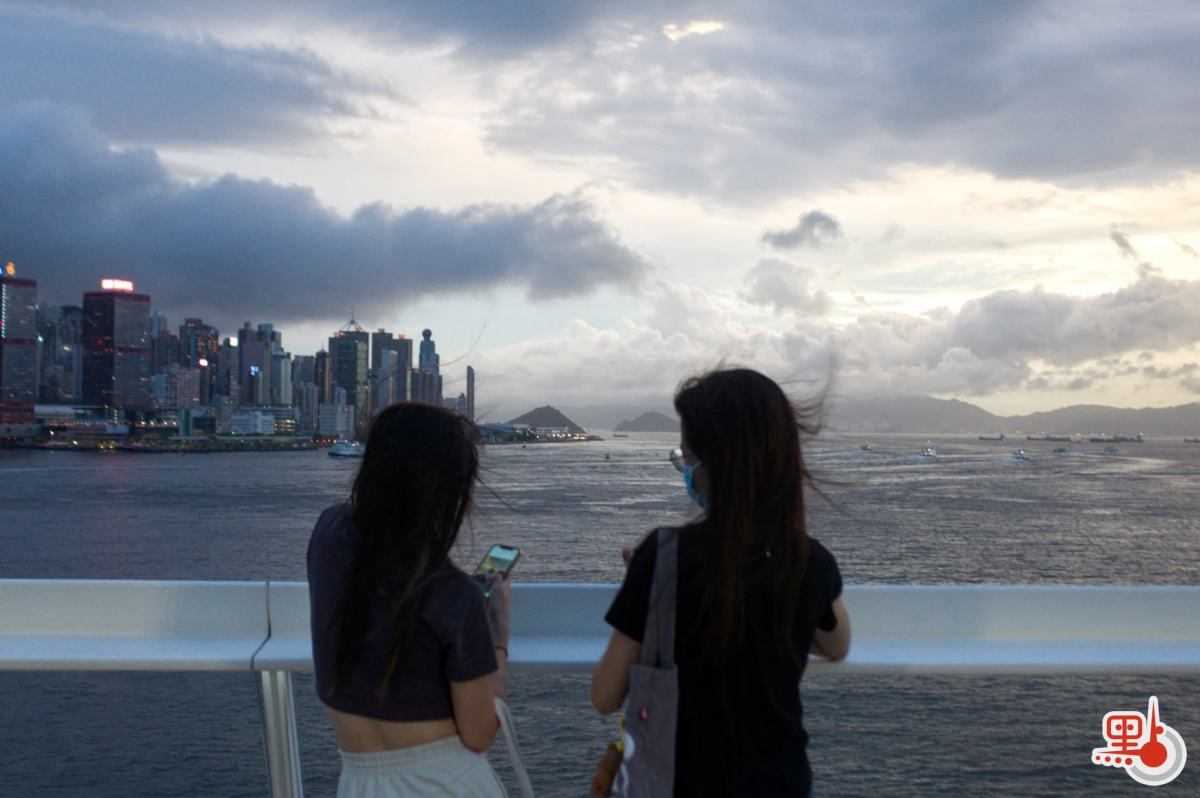 兩名女子在海港城天台談心。(點新聞記者麥鈞傑攝)