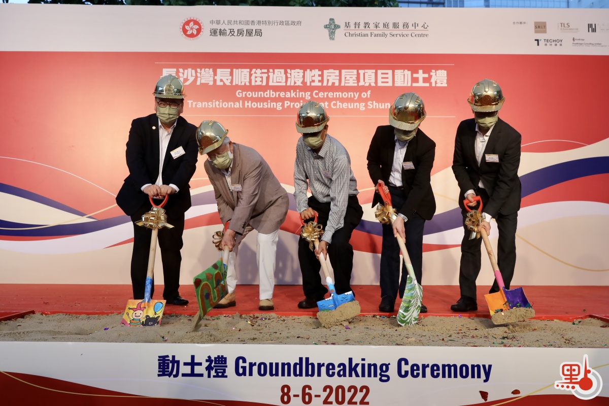 由基督教家庭服務中心負責興建及營運的「長沙灣長順街過渡性房屋項目」舉行動土禮。(點新聞記者李斯哲攝)