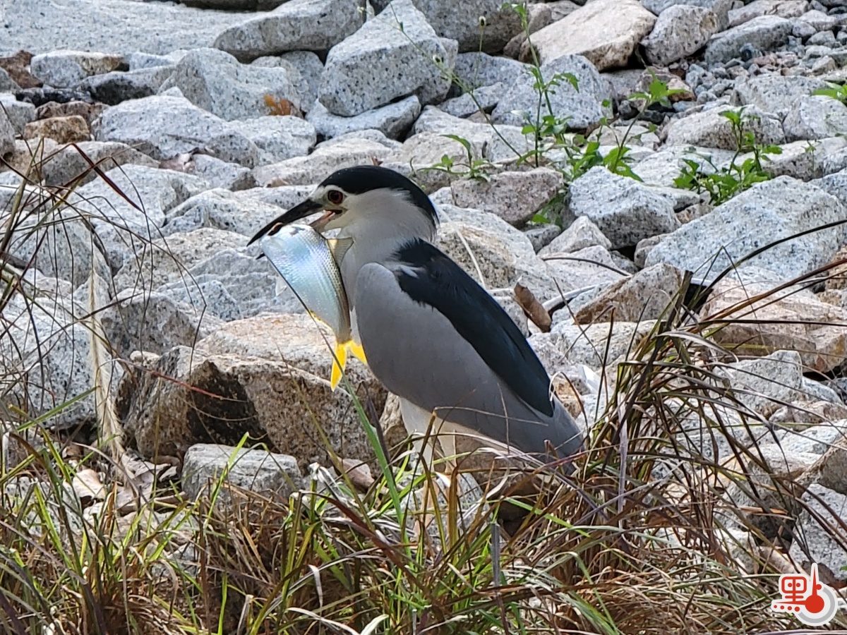 西九文化區內,一隻夜鷺抓到一條魚。(點新聞記者馮沛賢攝)