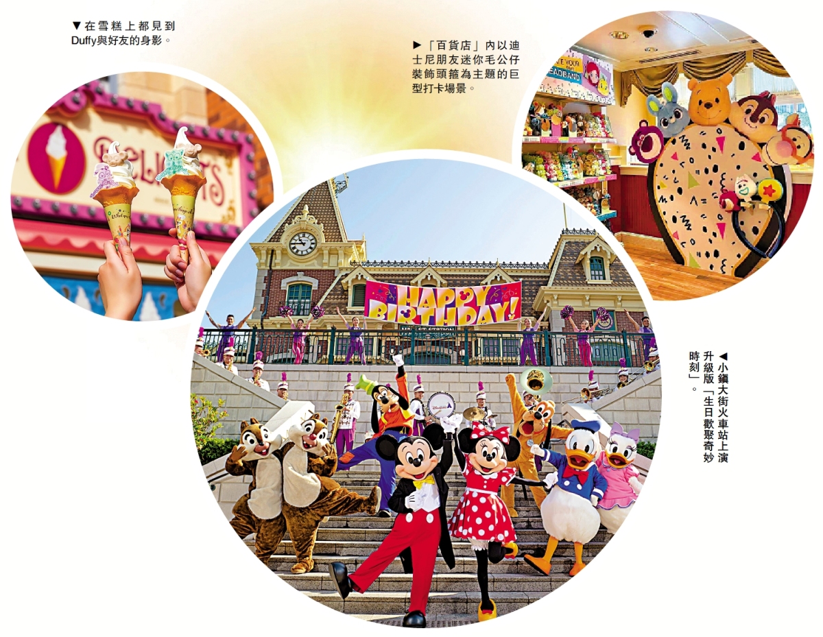 當中極具特色的節目是在小鎮大街火車站上演的升級版「生日歡聚奇妙時刻」,以全新歌曲加上米奇和米妮為大家準備的廣東話生日祝福,令活動瀰漫喜慶氛圍。大街餐廳則特製「奇妙生日泡沫咖啡」,在香濃的咖啡上,加上迪士尼朋友可愛圖像作生日裝飾,十分可愛。而為了讓生日主角加多一點甜,大家到小鎮雪糕店嘆雪糕,Duffy與好友會化身為雪糕上的生日小牌子,送上甜美祝福。