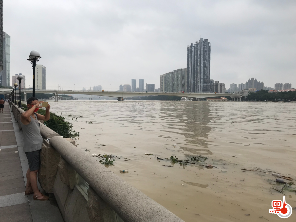 來自廣東水文部門的消息,受暴雨影響,14日起,西江發生2022年第3號洪水,北江、韓江分別發生2022年第1號洪水,這是自2009年以來西江、北江、韓江首次同時發生編號洪水。大量洪水湧向下游,導致廣州、佛山珠江江面水位大漲。