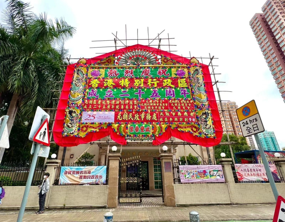今年是香港回歸祖國25周年,臨近七一,新界居民紛紛架設傳統大型花牌,與市民共慶共樂,共襄盛世。傳達祝福的同時,也促進香港傳統手藝傳承,促進文化保育。