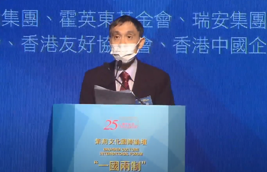 陳弘毅又說,中央制定頒布香港國安法、完善香港選舉制度,旨在引領「一國兩制」的實踐重回正軌。事實上,香港2019年的情況清楚地反映,「一國兩制」的實施已經偏離正常的軌道。倘若缺乏中央堅決果斷的行動,「一國兩制」將難以繼續發展。有些人可能懷疑迄今為止採取的補救措施與「一國兩制」遭遇的實際威脅是否相稱。陳弘毅認為大多數通情達理的人均會同意,在香港特別行政區成立25周年之際,香港的情況比2019年更好,期望香港恢復的社會及政治穩定能夠持續,並在疫情過後,經濟繁榮將得以恢復。他強調,對「一國兩制」下的香港未來仍抱有希望及信心。