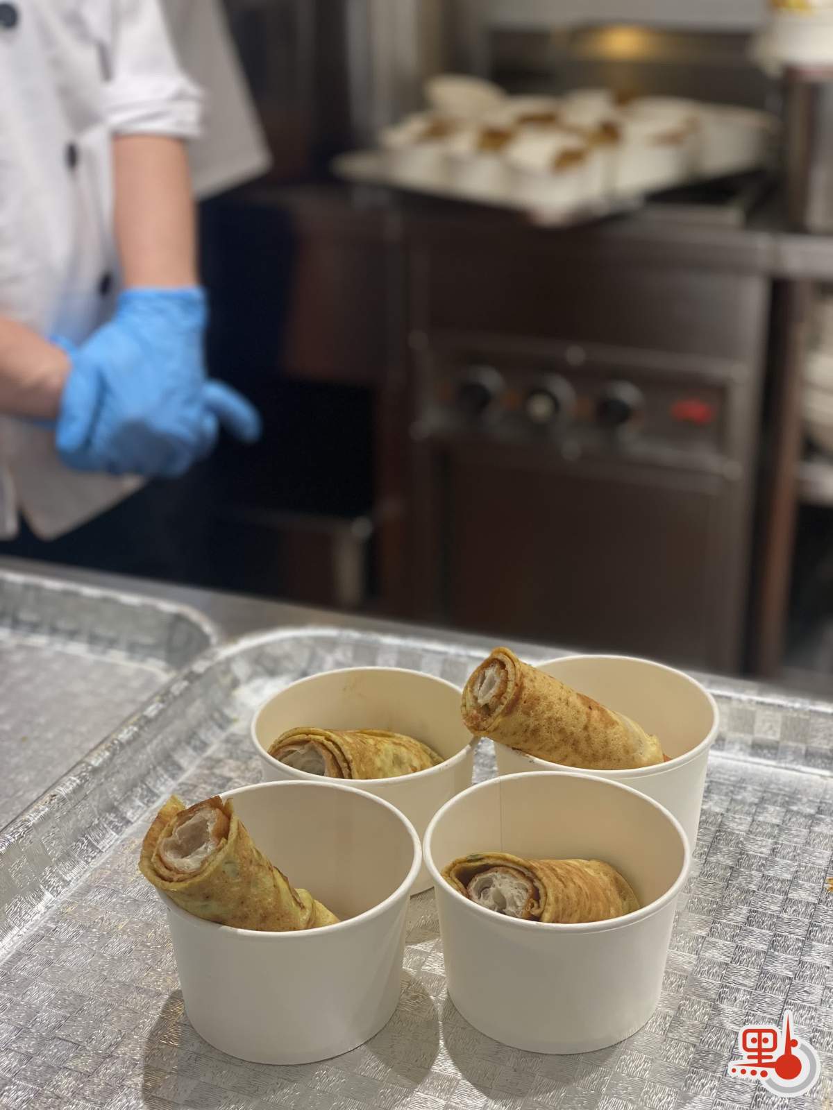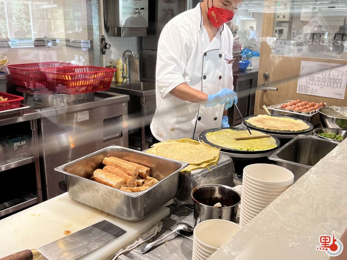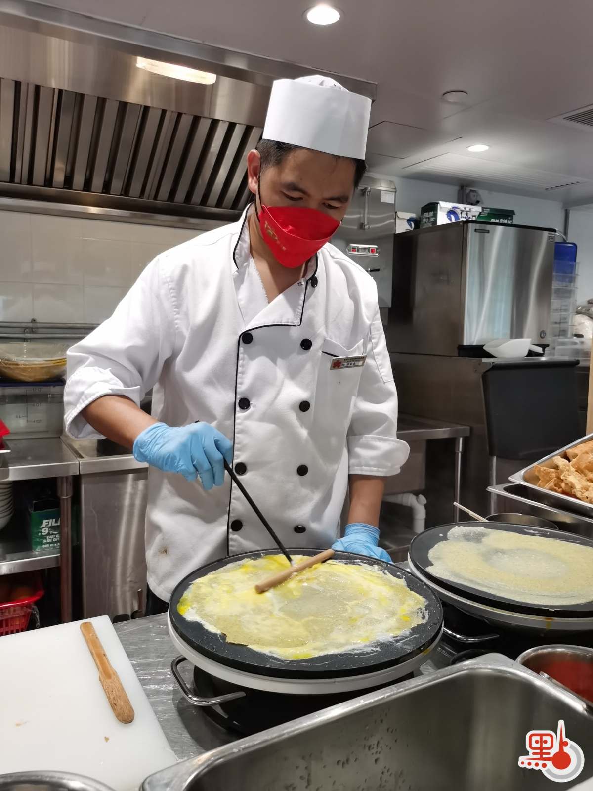 今日走進大文集團的食堂,可以看到兩款煎餅果子任君挑選——脆片的頗具天津特色,油炸鬼的融合了香港本土口味。許多香港同事原本吃不慣內地美食,但在今天的煎餅果子面前,紛紛「繳械投降」,爭先恐後大快朵頤,有同事欣喜地告知「我今天試了兩個煎餅果子,食得好飽喔。」