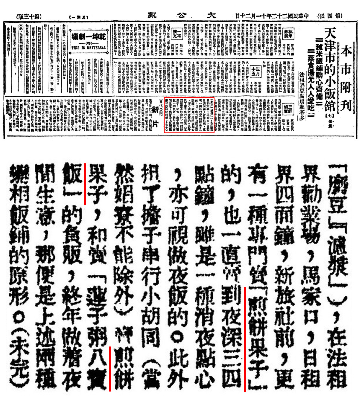 煎餅果子,又稱「煎餅餜子」,起源於天津街頭的風味小吃,其確切起源已無從考證,最早見諸現代報刊是1933年11月20日的天津《大公報》副刊,如今這個雜糧薄餅已是中國家喻戶曉的美食名物。