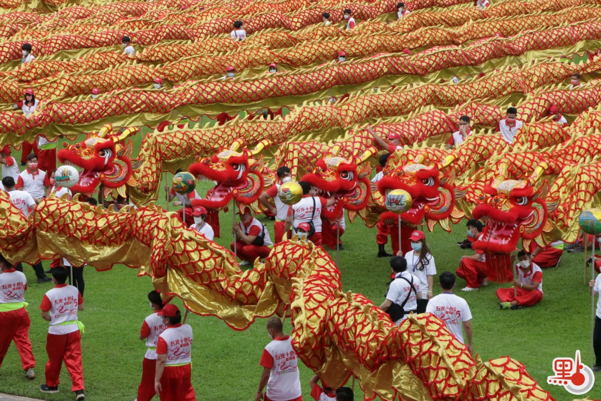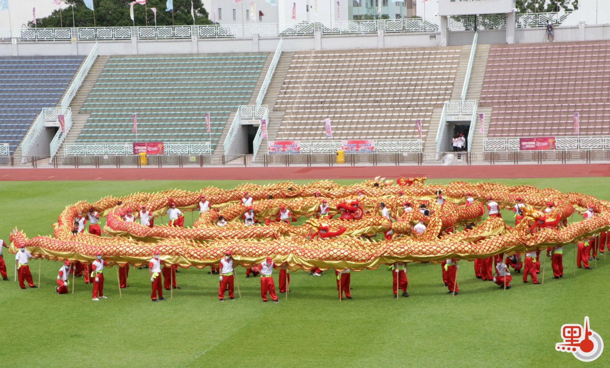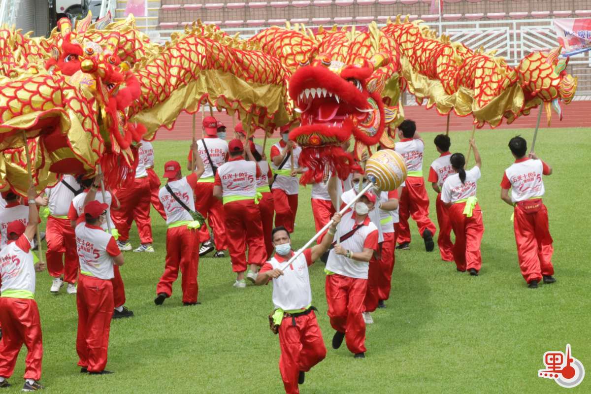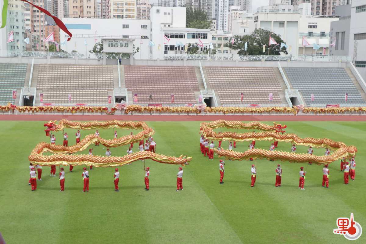 新界社團聯會和青晉義工團今日(18日)下午在元朗大球場舉行盛大的慶祝香港回歸祖國25周年「五光十色 祥龍慶回歸」活動啟動禮。近100個團體的2500名青年參加祥龍獻瑞匯演,舞動25條50米的大金龍,擺出「25」字樣和「祥龍盤旋」等造型,呈現「龍飛鳳舞」的磅礴氣勢,寓意香港由治及興再出發,你我同為香港開新篇,祝福祖國繁榮強盛!