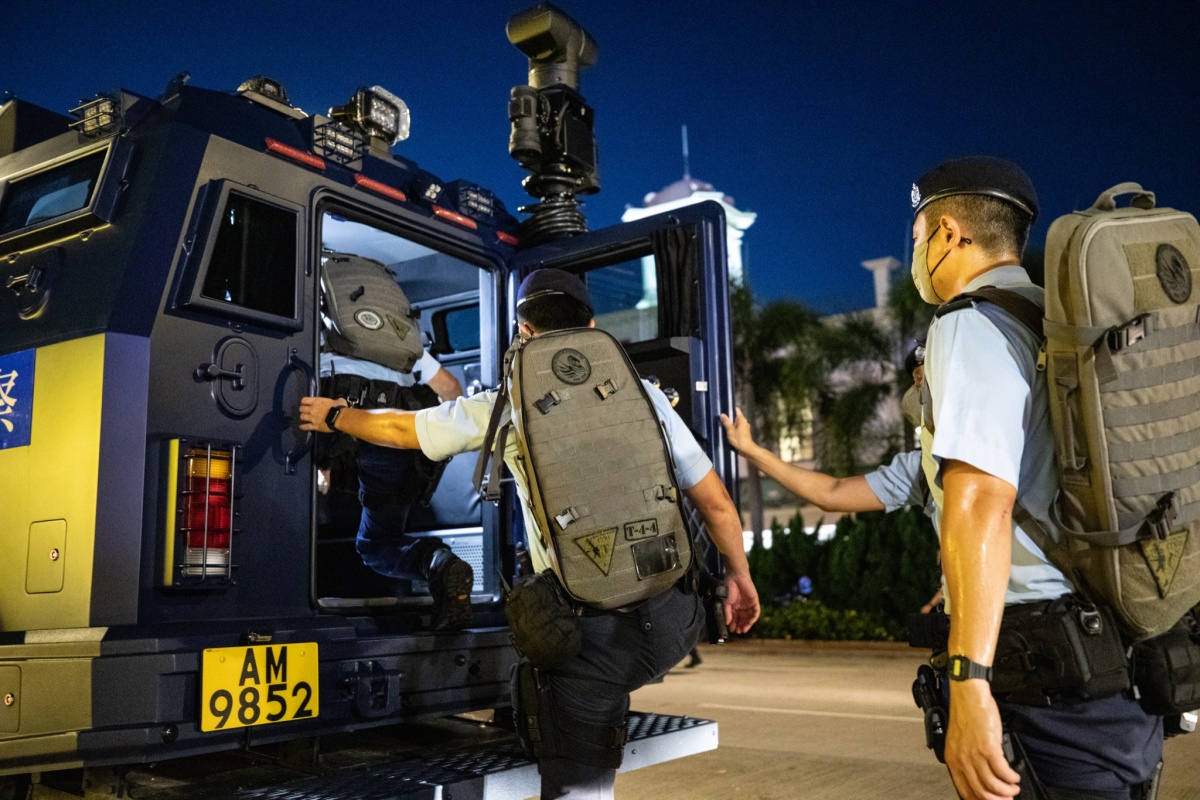 「劍齒虎」裝甲車於傍晚6時許載多名反恐特勤隊警員,抵達金鐘添美道。「劍齒虎」裝甲車的所有玻璃均可防彈,全車可抵抗子彈攻擊。根據內地媒體報道,裝甲車車長6.7米、寬2.36米、高3米,車內可容納10人,車身設置多個射擊孔,裝有催淚炮、聲波驅散器等裝置,亦有全方位紅外攝錄系統。車胎有特別裝置,即使漏氣亦能繼續行駛。