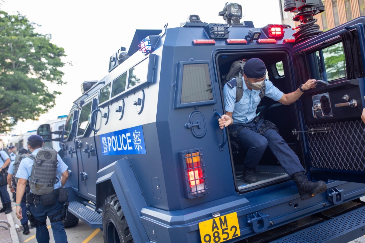 今年7月1日是香港回歸祖國25周年紀念日,候任行政長官李家超亦會於當日宣誓就職。警方在多區加強警力,今日(24日)傍晚多名機動部隊警員聯同反恐特勤隊人員,在金鐘添馬政府總部、立法會綜合大樓的添美道一帶與及葵芳地鐵站外進行高調巡邏,早前警方購入由內地製造的「劍齒虎」裝甲車首次出動。