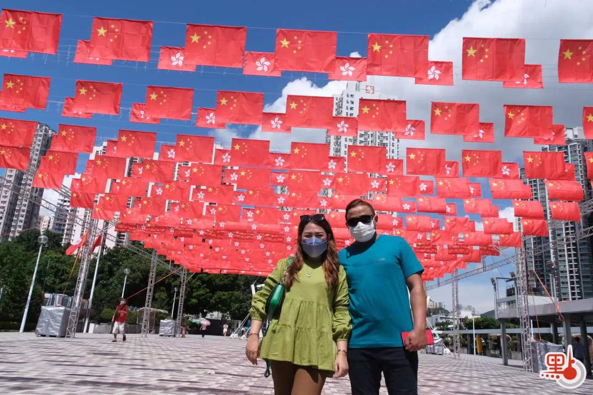 今年是香港回歸祖國25周年,臨近7月1日回歸紀念日,各區紛紛掛上大量國旗、區旗,以及慶祝標語等,與市民共慶回歸。在黃大仙區獅子山下,附近廣場及街道滿布國旗區旗,更有市民主動在旗海下打卡留念,記錄歷史一刻。