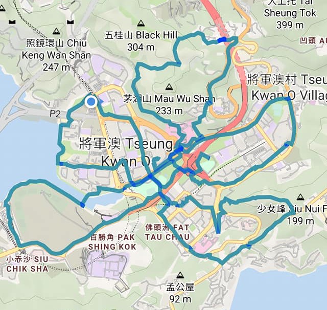 跑步路線:調景嶺港鐵站(起點)>調景嶺體育館>唐明街公園>將軍澳運動場>將軍澳單車館>坑口文曲公園>鴨仔山>清水灣道>將軍澳醫院>將軍澳單車館>環保大道>將軍澳海濱長廊>將軍澳單車館>靈實醫院>茅湖山>將軍澳風物汛(舊調景嶺警署)>衛奕信徑第三段>馬游塘道>寶琳路>茅湖仔足球場>靈實醫院>將軍澳單車館>頌明苑>寶琳北路>寶翠公園>寶康路>寶康公園>將軍澳體育館>將軍澳單車館>將軍澳廣場>寶盈花園>播道書院>將軍澳海濱公園>調景嶺港鐵站(終點)