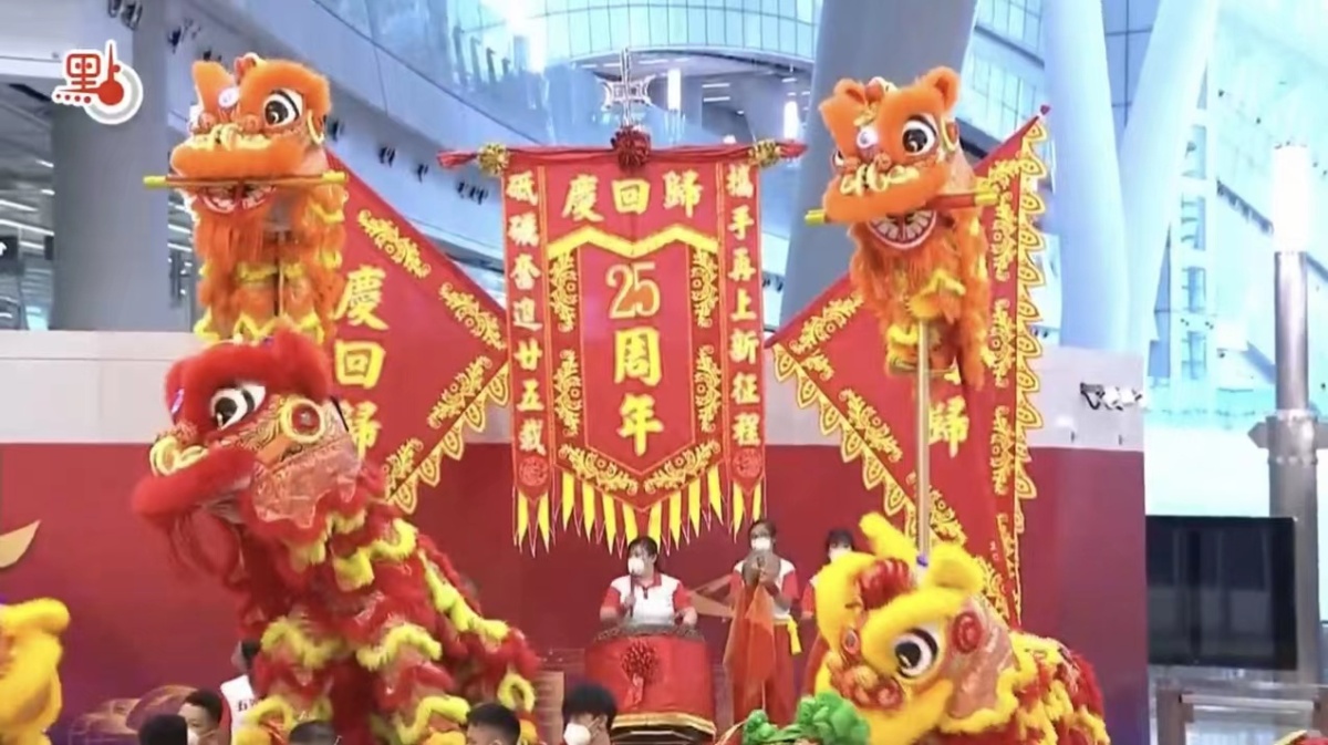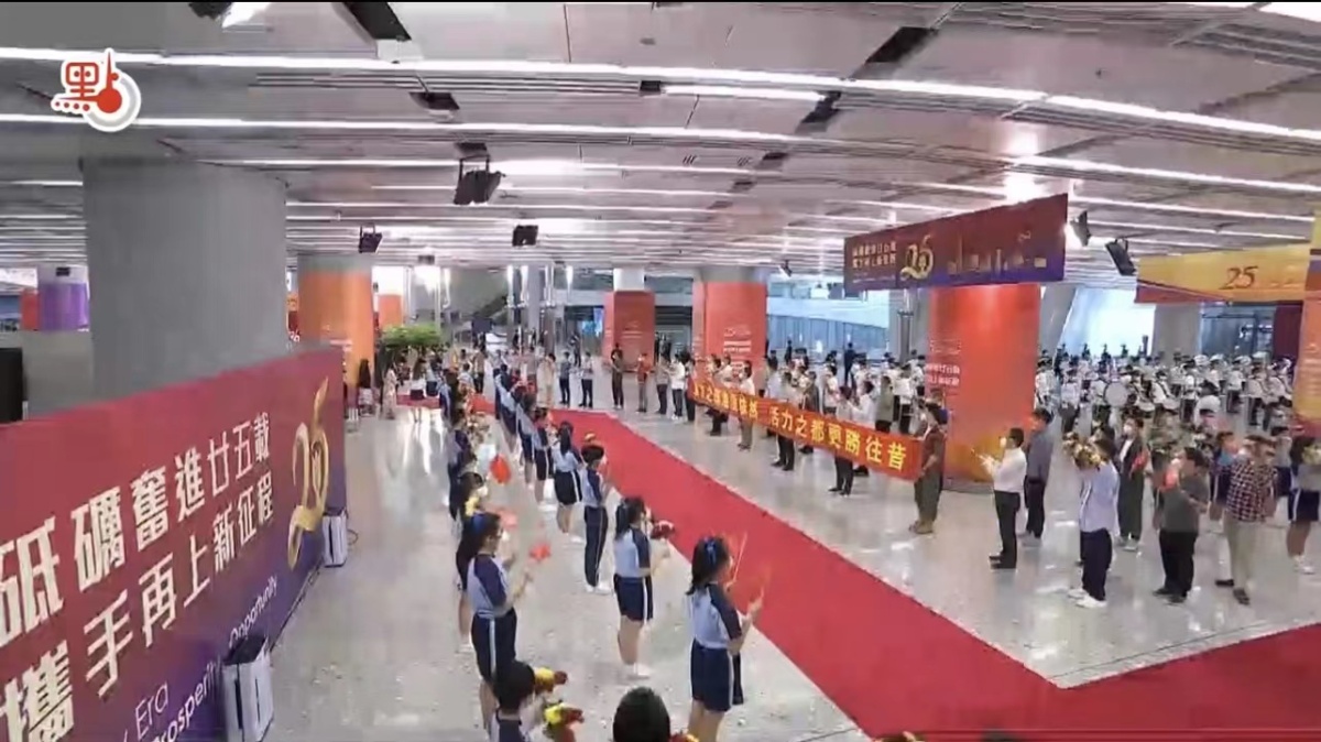 現場有橫額印有「熱烈慶祝香港回歸祖國25周年」、「熱烈歡迎習近平主席出席慶祝香港回歸祖國25周年大會暨香港特別行政區第六屆政府就職典禮」、「香港好、國家好;國家好、香港更好」、「東方之珠浪漫依然,活力之都更勝往昔」等字句。