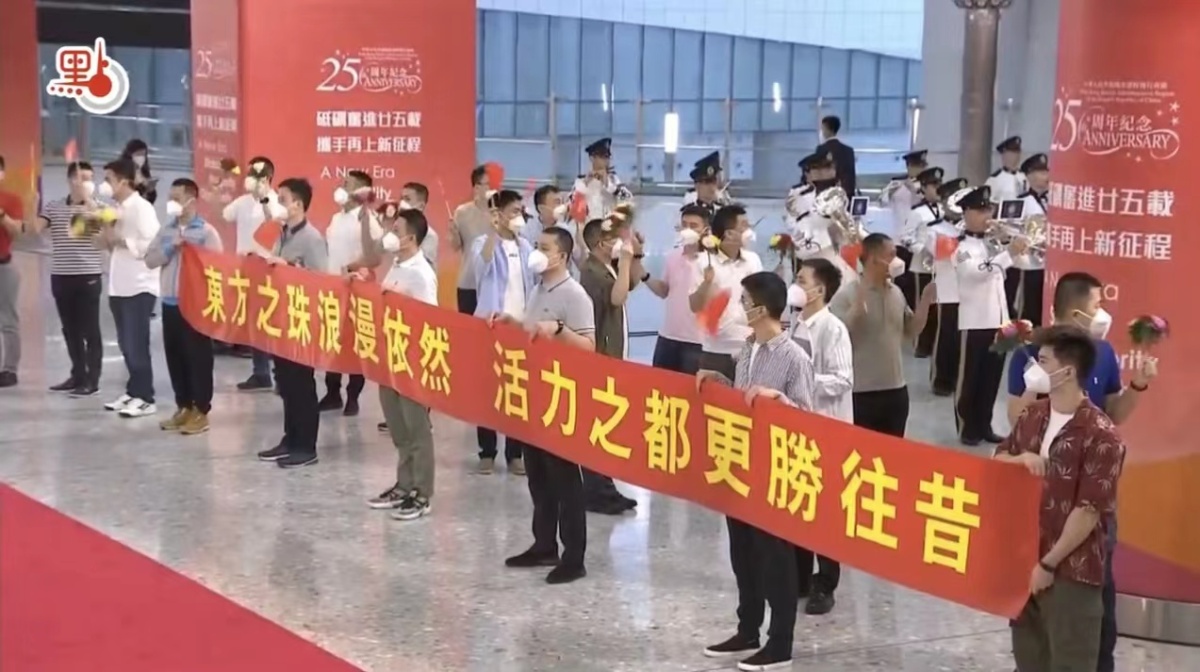 中央政府駐香港聯絡辦公室主任駱惠寧,中央政府駐香港維護國家安全公署署長鄭雁雄,外交部駐香港特派員公署特派員劉光源,中國人民解放軍駐香港部隊司令員彭京堂、政委賴如鑫等也到車站迎接。