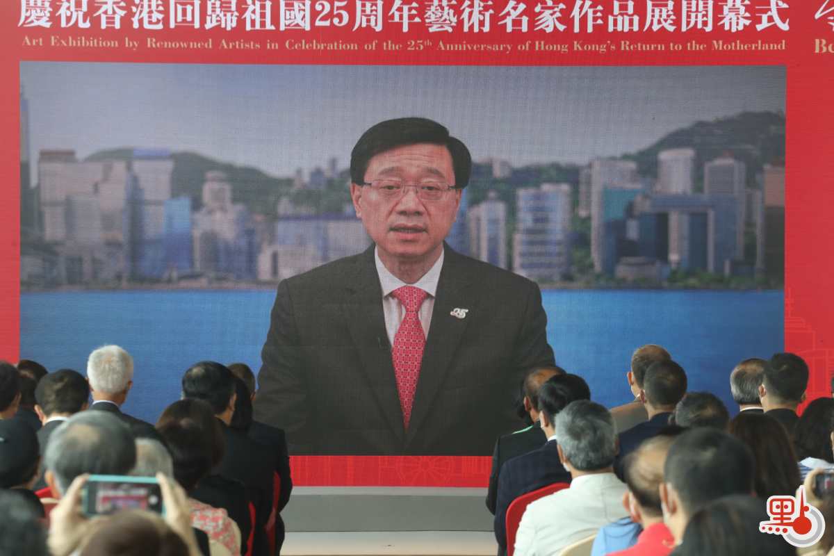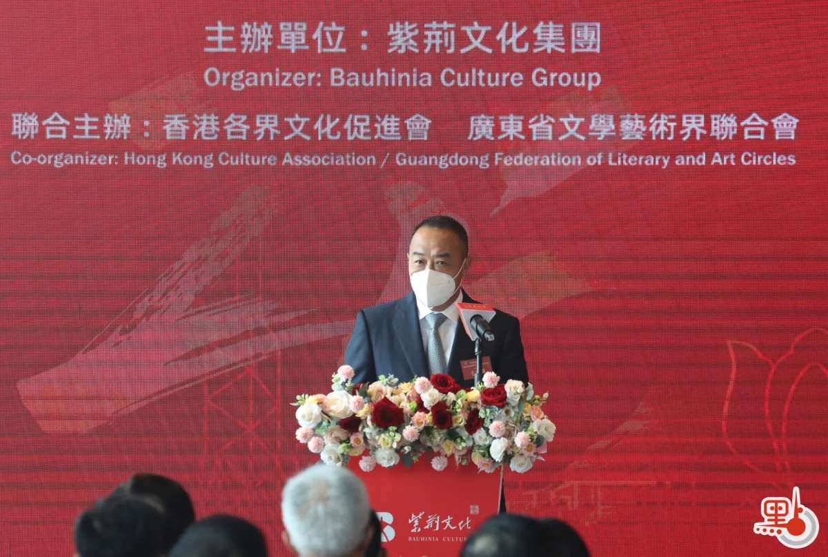 行政長官李家超今日在開幕式上通過視頻致辭,他感謝紫荊文化集團在全港同慶的重要時刻舉辦此次展覽,給香港市民帶來一場豐盛的文化藝術之旅。他表示,香港自回歸祖國以來,在國家的重視和支持下,成功落實「一國兩制」,在社會和經濟發展方面都取得驕人的成就。國家「十四五」規劃明確支持香港發展成為中外文化藝術交流中心,為香港的文化事業創造出更廣闊的發展空間。