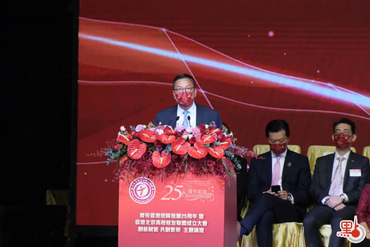 慶祝香港回歸祖國25周年暨香港北京高校校友聯盟成立大會和「創新賦能 共創繁榮」主題論壇,今日(7日)在香港會議展覽中心和北京分會場同步舉行。主禮嘉賓香港特別行政區行政長官李家超致辭表示,香港與國家風雨同舟,血脈相連,回歸25年來,香港與內地的交流與合作不斷,其中與北京在經濟、金融、文化、創科等領域的合作,都取得豐碩的成果。兩地更發揮優勢互補的關係,對推動兩地繁榮發展起到關鍵作用。