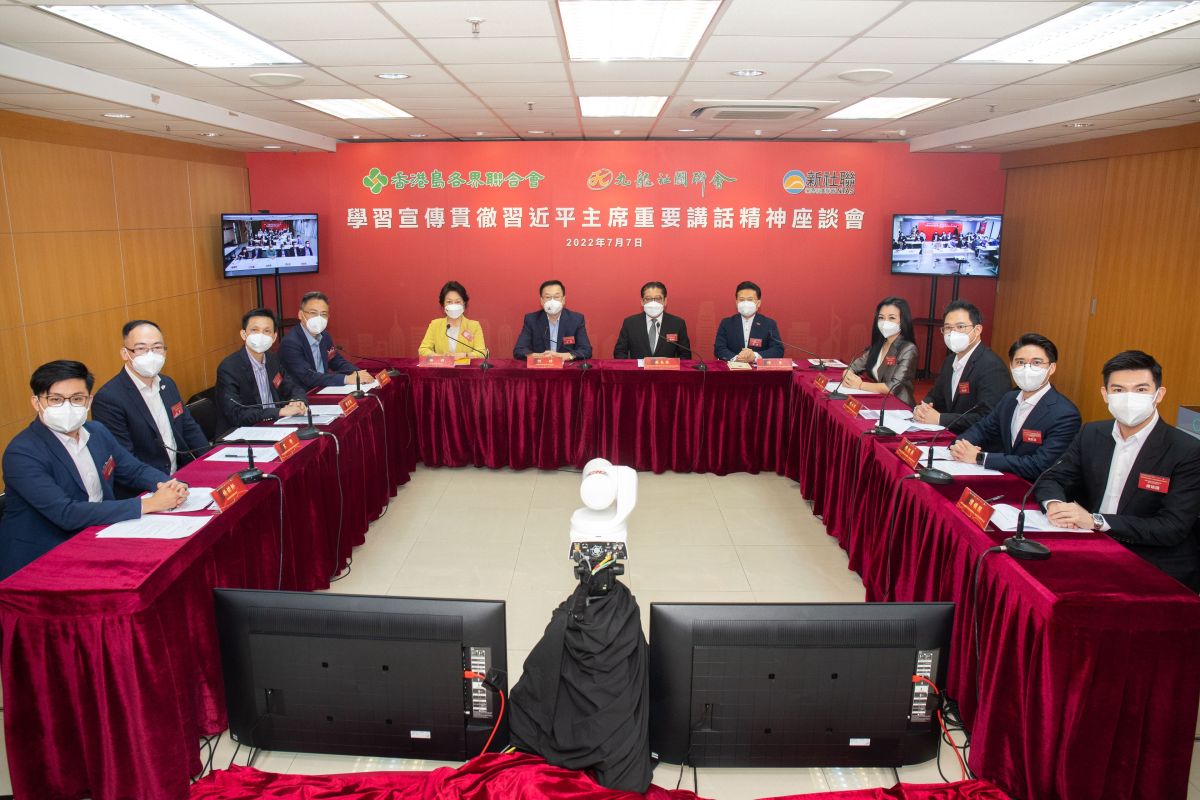 香港島各界聯合會、九龍社團聯會、新界社團聯會今日(7日)聯合舉辦學習宣傳貫徹習近平主席重要講話精神座談會,基層社團首長、地區代表暢談學習心得,交流社團工作經驗,謀劃香港發展未來。活動還特別邀請中聯辦何靖副主任作嘉賓發言。