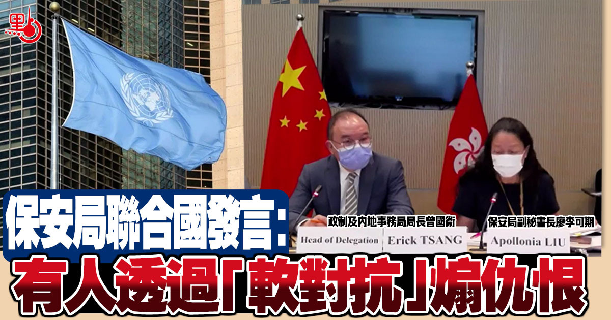 香港特區政府代表團日前以視像會議形式出席聯合國人權事務委員會會議。有聯合國人權事務委員會成員前日在審議香港人權狀況時,宣稱製作兒童繪本及叫喊「光復香港」「港獨」口號等屬「無害行為」(innocuous act),是「合法行使言論自由權利」云云。保安局副秘書長廖李可期在回應時反駁,煽動罪執法行動時,必須考慮2019年修例風波背景,又不點名批評有人透過「軟對抗」,通過傳媒、文化及藝術煽動對中央政府及特區政府的仇恨及對抗。她強調,香港國安法條文列明保障人權,執法部門只考慮證據,不會考慮被告的背景。