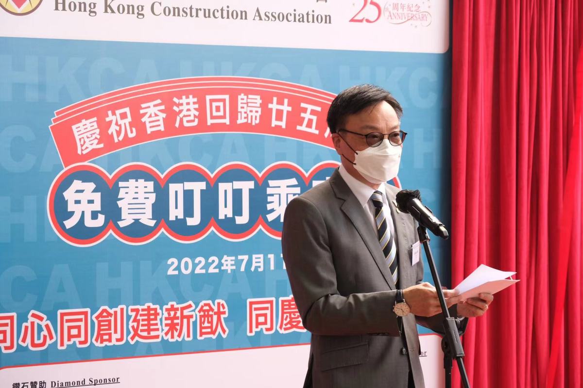 為慶祝中華人民共和國香港特別行政區成立25周年,香港建造商會今日(11日)舉辦「建造商會叮叮樂」電車免費乘車日活動,讓全港市民可全日無限次免費乘搭叮叮,沿途欣賞香港極具特色的建築物。