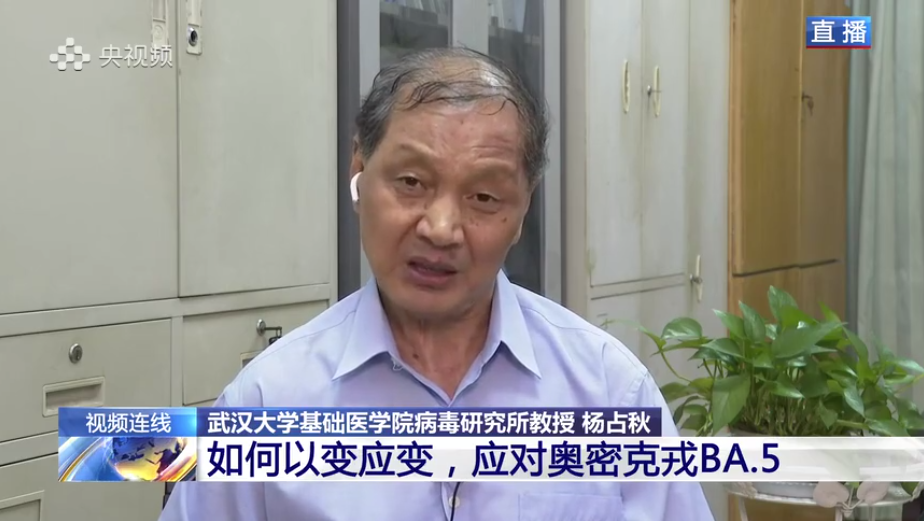 奧密克戎BA.5亞分支在內地引發本土聚集性疫情,防控形勢嚴峻複雜。武漢大學醫學部病毒學研究所副所長、病原生物學系副主任楊占秋11日接受央視新聞直播採訪時表示,奧密克戎病毒變異株的致病能力,與過去的流行株相比明顯減弱。而無症狀感染的人增多,亦給檢測和發現帶來一定的困難。
