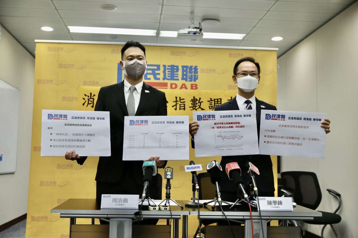 民建聯今日(14日)公布6月初「消費者信心指數」調查結果。與年初疫情嚴峻期間比較,是次調查結果,各指數均有改善,特別是「消費者預期指數」由上次的93上升至正面水平的105,是自2007年10月以來重上100水平,顯示市民之前的憂慮情緒已明顯放緩,對新一屆政府施政抱有期望。