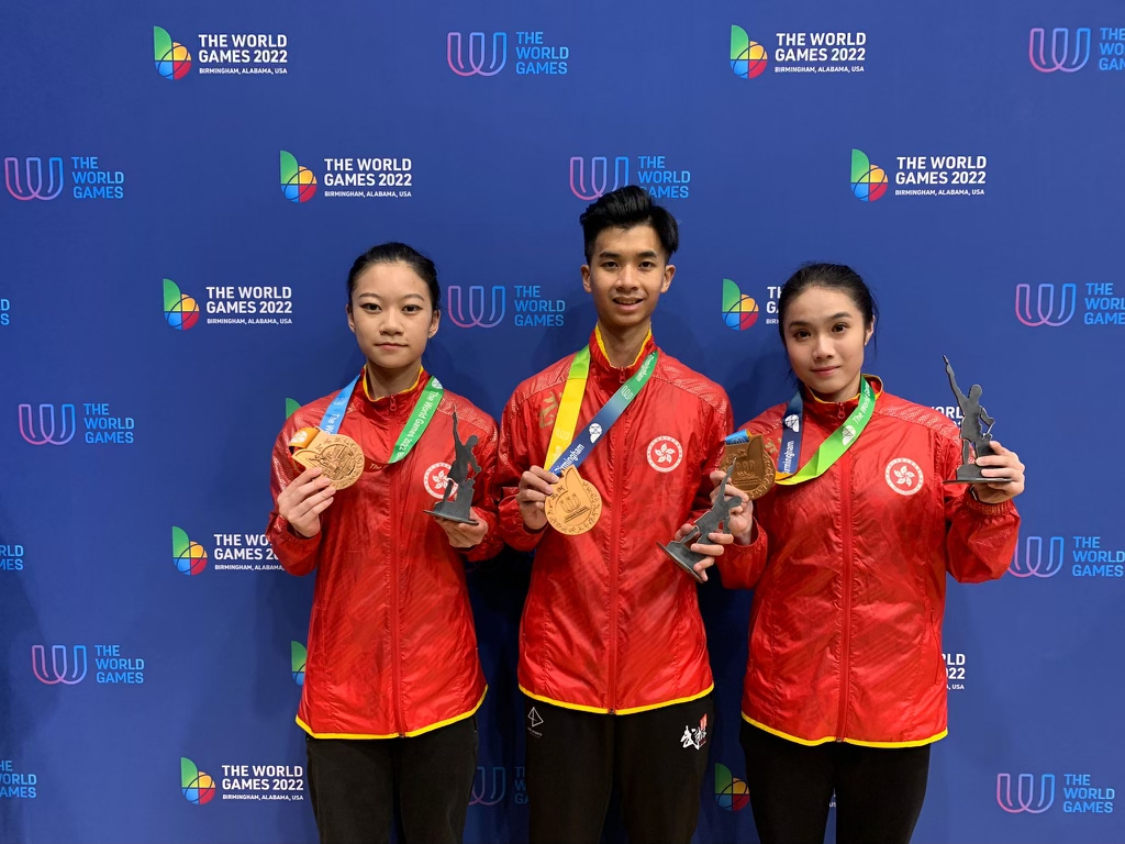 香港武術運動員李泳容、楊頌熹和楊子瑩分別在2022年世界運動會(世運會)武術女子南拳南刀全能、男子太極拳太極劍全能,以及女子刀術棍術全能賽事中均奪得銅牌,在今屆世運會為香港增添3面銅牌。文化體育及旅遊局局長楊潤雄今日(14日)表示祝賀。