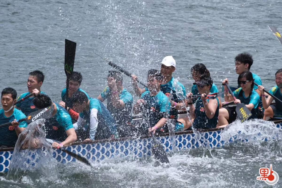 龍舟挑戰賽勝出者在玩水。(點新聞記者麥鈞傑攝)