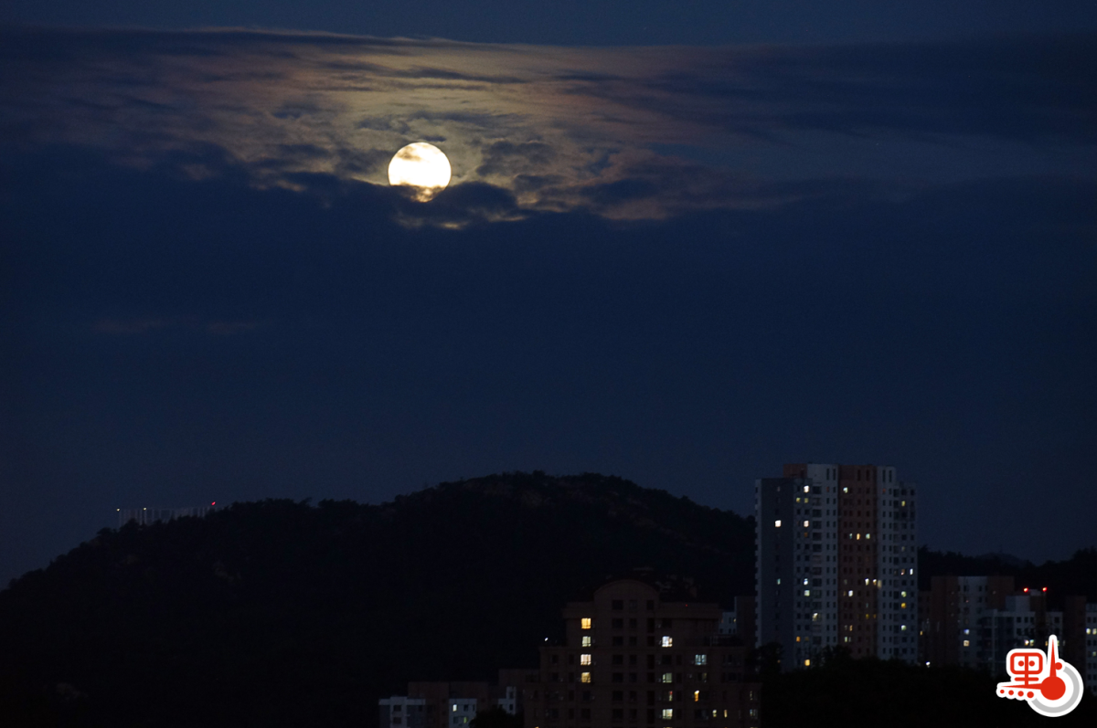 點新聞記者在遼寧大連拍攝到「超級月亮」穿雲而出。(點新聞記者宋偉攝)