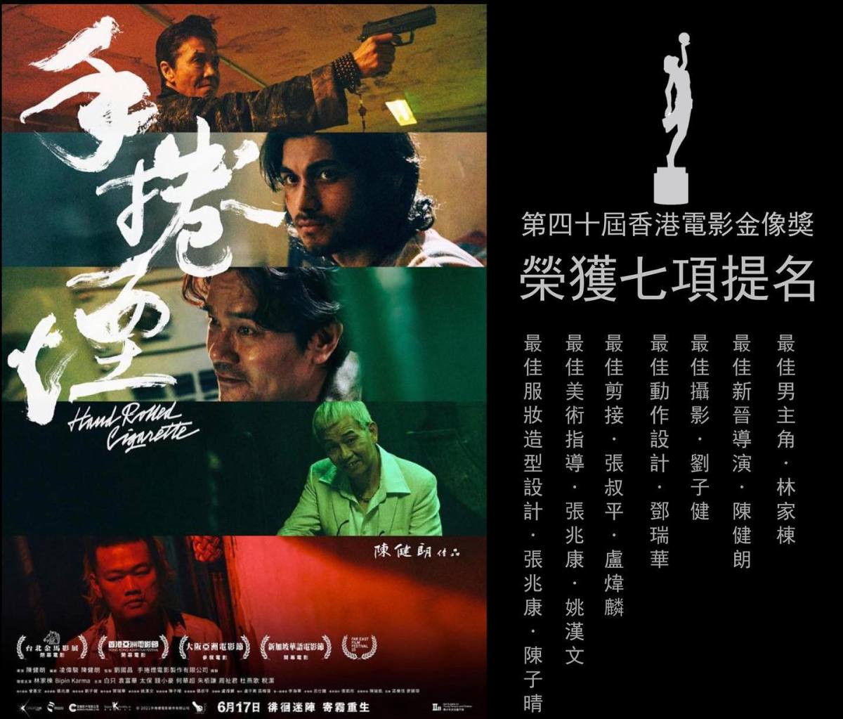 《手捲煙》為陳健朗執導並與凌偉駿聯合編劇的電影作品,由林家棟和Bipin Karma等主演;在第40屆香港電影金像獎中共獲七項提名,包括新晉導演、最佳男主角、最佳攝影、最佳剪接、最佳美術指導、最佳服裝造型設計及最佳動作設計,最終由陳健朗奪得新晉導演獎。