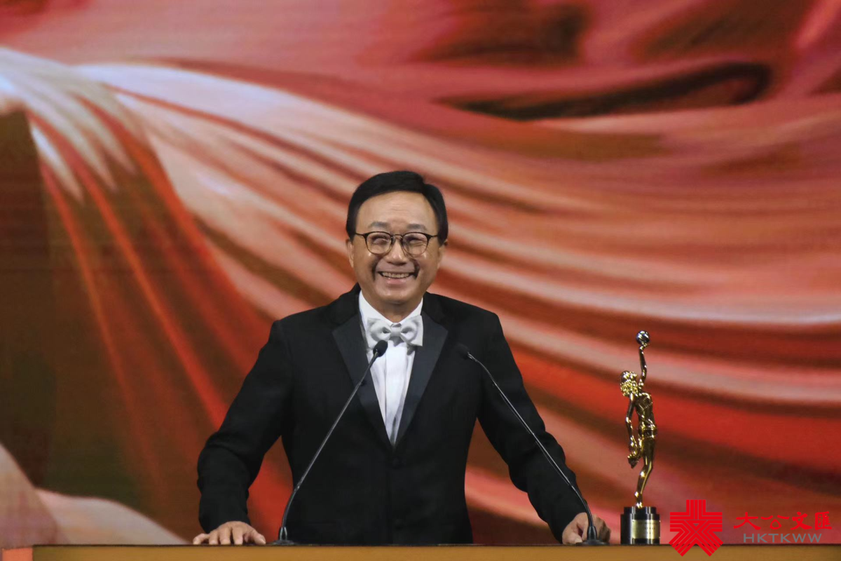 四哥昨晚在林家棟陪同下上台領獎。四哥步履不大穩,家棟緊挽住他臂彎。四哥接過獎座台下全場起立鼓掌。四哥稱:「多謝大家!」家棟問他還有甚麼想跟大家說時,他想除下口罩,家棟緊張對他說:「呢度細菌多,醫生說。」四哥滿臉笑容稱:「我唔識講呀!我剩係攞呢個嘢(獎座)!」之後,家棟及其他工作人員護送四哥回後台。