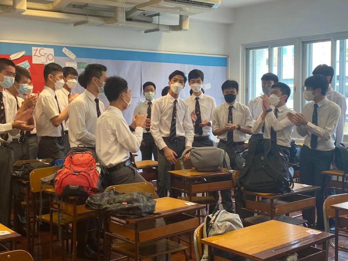DSE放榜,喇沙「狀元」張殷碩接受同學們的祝賀。(點新聞記者李斯哲攝)
