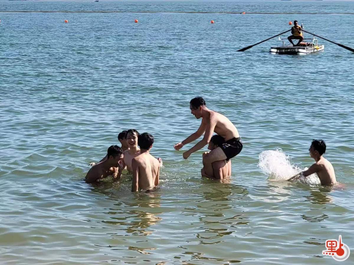 天氣炎熱,市民在海裏游水。(點新聞記者馮沛賢攝)