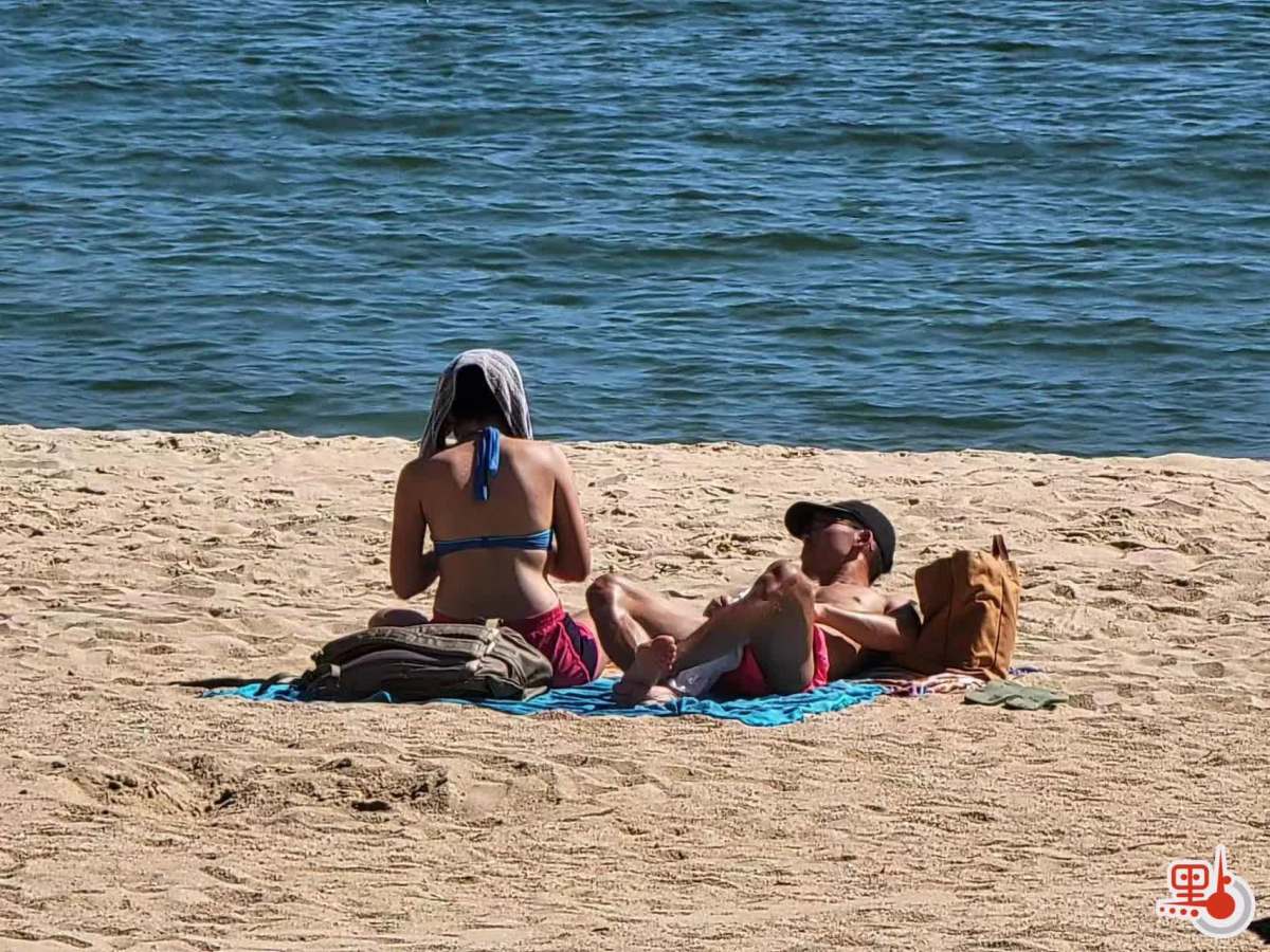 天氣炎熱,市民在海灘消閒。(點新聞記者馮沛賢攝)